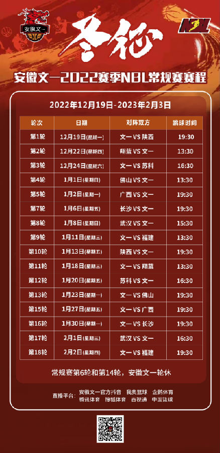大年初二晚上七点半,安徽文一将对阵佛山功夫小子,欢迎球迷朋友在新春佳节中观看比赛。(胡一刀/文)