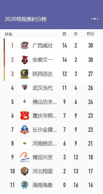本轮之后,第18轮常规赛轮空的安徽文一将在12月11日下午16:30对阵福建莆田,敬请期待。(胡一刀/文)